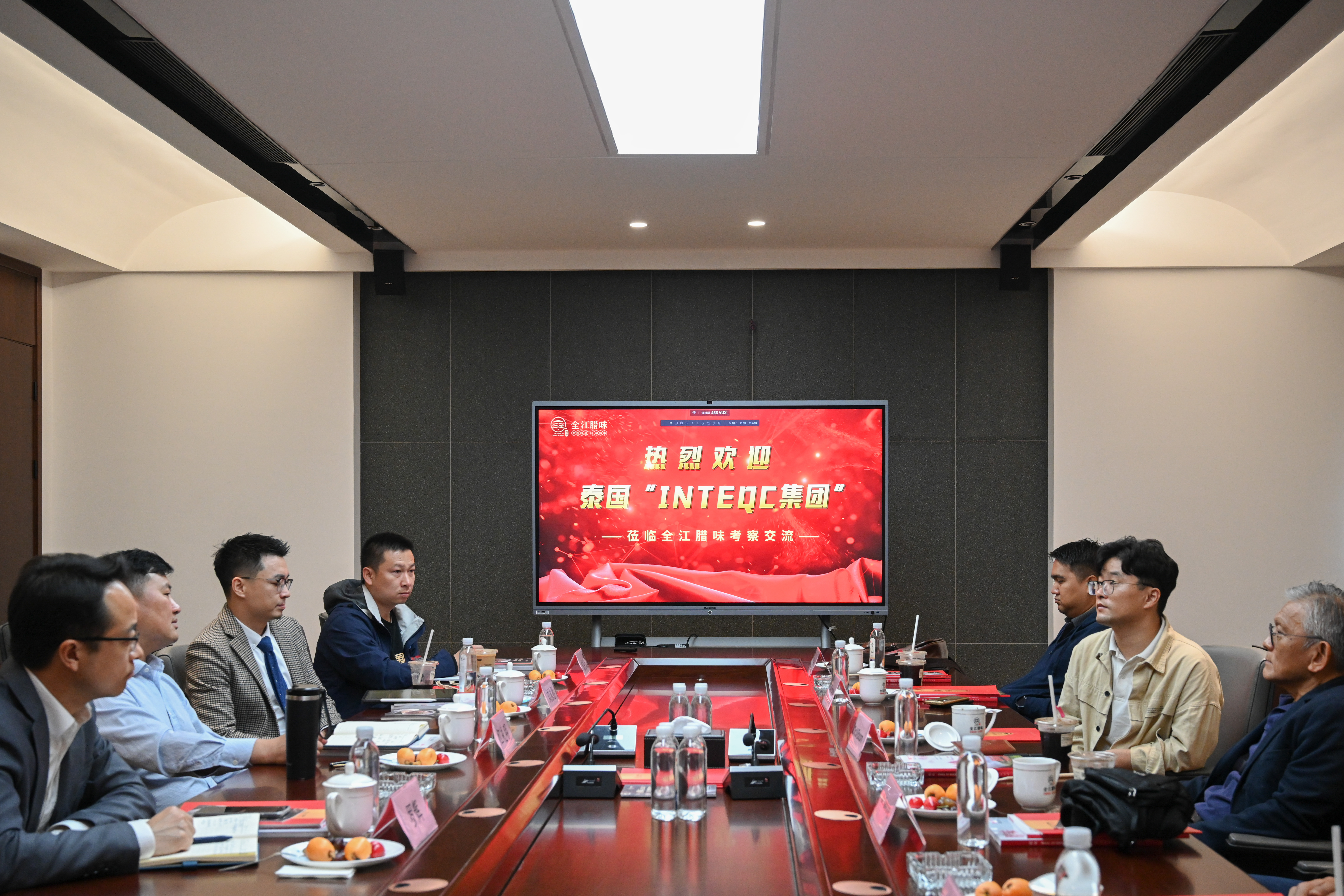 4月13日上午,泰國INTEQC集團創(chuàng)始人、董事長DR.Wiboon 先生、INTEQC 集團工程部負責人Mr.Peechanon先生以及食品部門工程師Mr.Samrong先生和Mr,Jetnipat先生一行到訪全江臘味進行考察交流,全江臘味董事長江禮明先生率領公司相關負責人進行了接待。