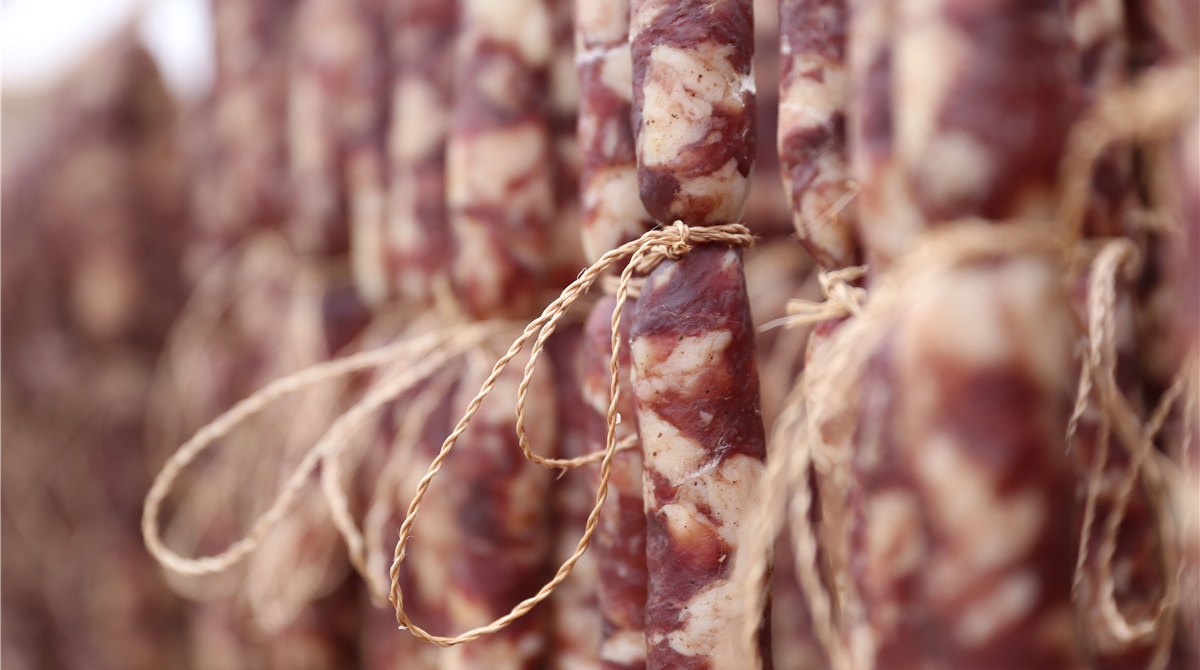 香腸臘肉在風(fēng)和陽光下 滋滋淌著油脂