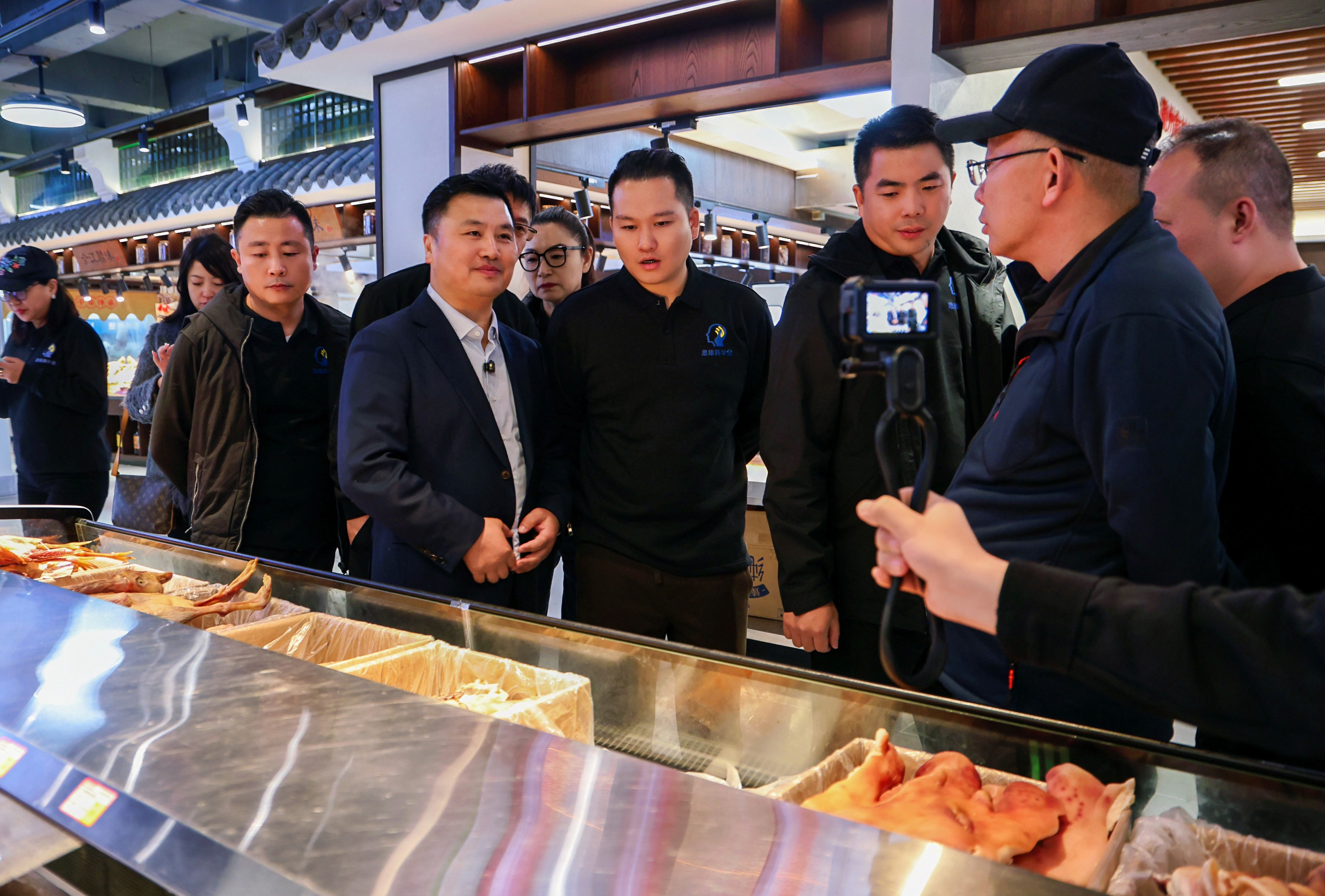 考察團一行首先深入全江臘味智能化生產(chǎn)基地,實地察看標(biāo)準化生產(chǎn)車間。董事長江禮明和總經(jīng)理胡國峰現(xiàn)場介紹核心產(chǎn)品的傳統(tǒng)工藝傳承,以及智能設(shè)備在品質(zhì)管控、產(chǎn)能提升中的應(yīng)用。隨后走進全江臘味體驗店,那香氣撲鼻的臘肉、色澤誘人的臘腸,像是在列隊歡迎遠道而來的客人。